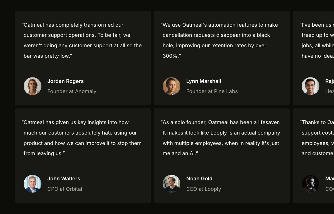 Take a look at the example pages to explore the component APIs, and see just how versatile the Oatmeal kit can be. There's never been a faster way to build a thoughtfully designed marketing website with Tailwind CSS.