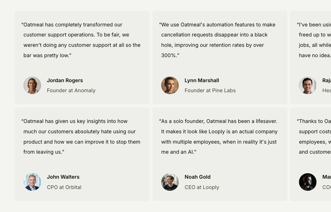 With a traditional template, you're stuck with a single design that may not easily fit your product or content. Oatmeal gives you the flexibility to create a site that feels truly yours. We've taken great care to ensure that every section is accessible, responsive, and looks great in any combination.